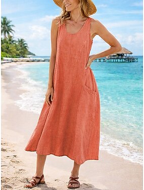 Femmes Robe maxi Robe d'Été Robe d'été Occasionnel Quotidien Coupe Ample Uni Sans manches Col en U Orange Été