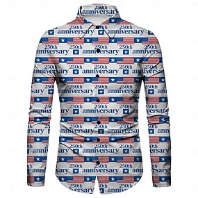 250e anniversaire des États-Unis Rétro Vintage Années 1970 Chemise Chemise Aloha Manches longues Hippie Géométrique Ethnique Déguisement Homme Mascarade 4 Juillet Soirée Jour de l'indépendance Adulte