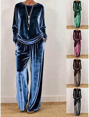 Femmes Ensembles de Pantalons manche longue Col rond Couleur Unie Mode Streetwear Occasionnel Quotidien Extérieur Bleu Noir Violet Automne & Hiver Coupe régulière