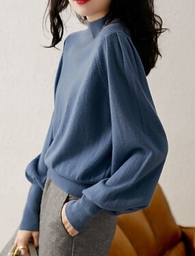 Femmes Pull Streetwear Occasionnel Couleur Unie Col montant Tricoté manche longue Hauts Réguliers Tricoter Quotidien Sortir Week-end Noir Bleu Automne Hiver