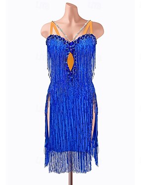 Danse Latine Robe Gland Paillettes Femmes Soirée Entraînement Performance Sans manches Haut Polyester Spandex