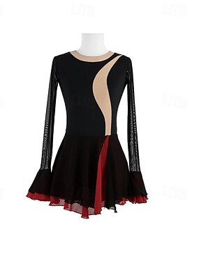 Robe de Patinage Artistique Femme Fille Patinage Robes Bleu lagune Rouge Noir bleu. Patchwork Dos ouvert Maille Spandex Haute élasticité Entraînement Professionnel Compétition Tenue de Patinage