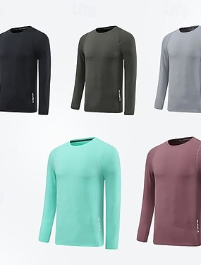 Homme Chemise Performance T-shirt de sport manche longue Col ras du cou Top Extérieur Séchage Rapide Évacuation de la transpiration anti-odeurs Respirant Nylon Noir Vert clair Rouge Pêche Tennis