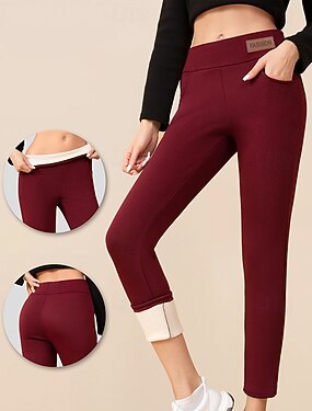 Femmes leggings doublés en polaire Slacks Leggings Doublure polaire confortable Streetwear Occasionnel Longueur complète Naturel Uni Taille Élastique Confortable Rue Fête Tenue quotidienne Rouge