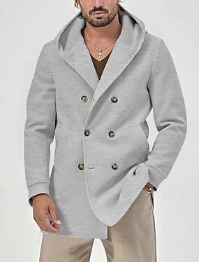 Homme Caban Trench Vacances Quotidien Automne Hiver Polyester Confortable Vêtements d'extérieur Vêtement Tenue Mode Classique Uni Avec Poches À capuche Double Boutonnage