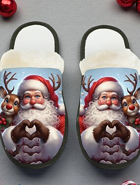 Pantoufles vintage Père Noël pour homme - chaussons d'intérieur chauds et doublés de peluche, ornés d'un imprimé de Noël classique, chaussures d'hiver confortables pour la maison et les cadeaux de