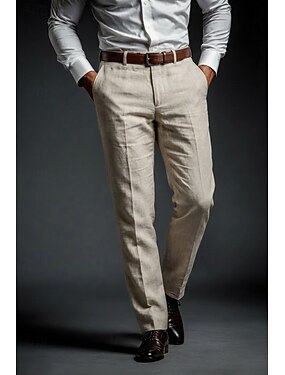 Pour des hommes Coton Lin Dress Pants works Pantalon décontracté Affaires Soirée Élégant Classique Noir Blanche Kaki Couleur Unie Coupe sur mesure Long Non Elastique