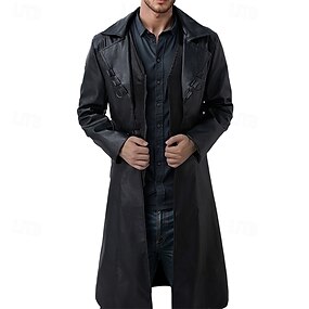 Homme Manteau Trench Trench-Coat Long Vacances Quotidien Automne Hiver Similicuir Coupe-vent Vêtements d'extérieur Vêtement Tenue Mode Classique Uni Avec Poches Revers Simple Boutonnage