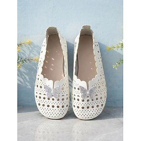Mocassins plats blancs larges pour femmes avec papillon en strass – mocassins ajourés souples et respirants, parfaits pour les loisirs, les voyages et le quotidien.