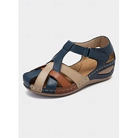 Femmes Sandales Sandales plates Sandales orthopédiques Sandales Oignon Grande Taille Quotidien Extérieur Couleur Unie Boucle Talon plat Bout ouvert ancien Occasionnel Cuir PU PU Boucle Bleu Orange