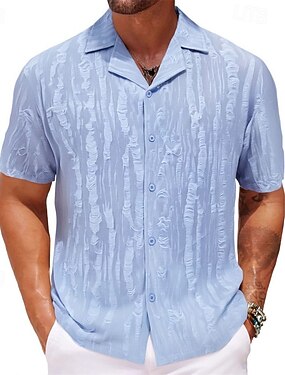 Homme Chemise Noir Blanche Bleu Manche Courte Couleur Unie Col Camp Maison Bureau Boutons Vêtement Tenue Classique