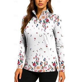 Femmes Floral T-shirt POLO Chemise de tennis Sweat-shirt de tennis manche longue Imprimé Quart de zip Sweat Protection UV Élastique Respirant Tennis Le golf Pickleball Col montant Col zippé Chemise