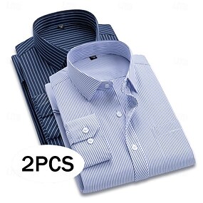 Homme Chemise habillée Chemise sans repassage Chemise à Col Chemise Boutonnée Rayé Mariage Travail A D G H manche longue Col Printemps & Automne Vêtement Tenue Boutonné