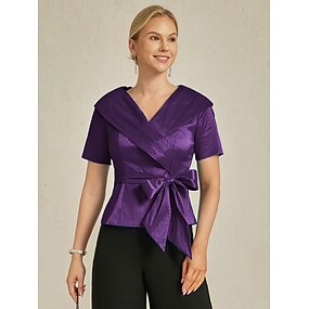 Femmes Chemisier Hauts de soirée Nœud devant Couleur Unie Uni Élégant Métallique Moderne Manche 3/4 Col en V Hauts Réguliers Soirée robe demoiselle d honneur Semi-Formel Aubergine Printemps, Automne