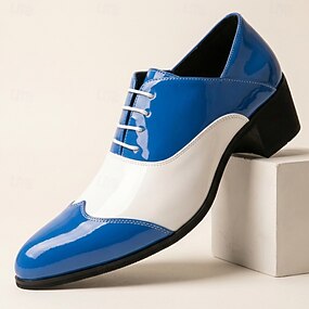 Chaussures Oxford pour homme en cuir verni bleu et blanc, à lacets, chaussures habillées élégantes pour mariages, fêtes, banquets, spectacles et soirées.