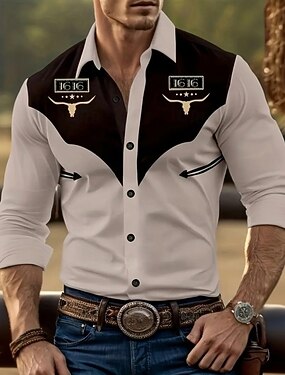 Homme Imprimé Vache Chemise Chemise Western Chemise de cow-boy manche longue Vintage Rétro Extérieur Vacances Printemps Automne Col Rabattu Impression 3D Chemise en lin Abricot
