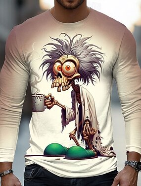 Homme 3D Zombies T-shirt manche longue T-shirt Impression 3D Col ras du cou Chemise Mode Basique Rue Occasionnel Quotidien Kaki Gris foncé Été Printemps Vêtement Tenue S M L XL XXL XXXL