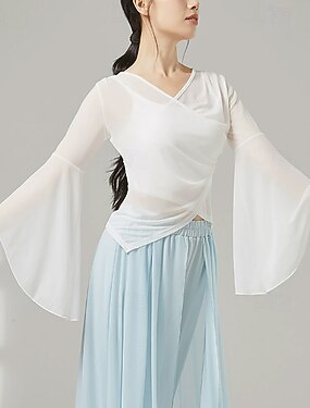 Danse de Salon Robe Couleur Pure Femme Fille Utilisation Entraînement manche longue Taille haute Mousseline de soie Chinlon Tulle