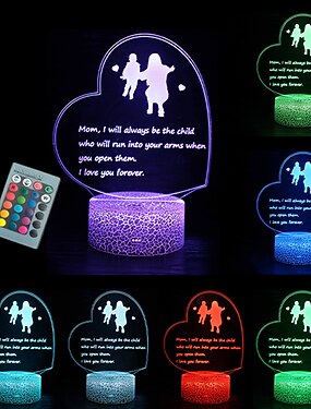 lumière LED 3d en forme de coeur cadeaux de mère pour noël cadeau de fête des mères poème de mère veilleuse cadeaux d'anniversaire pour maman