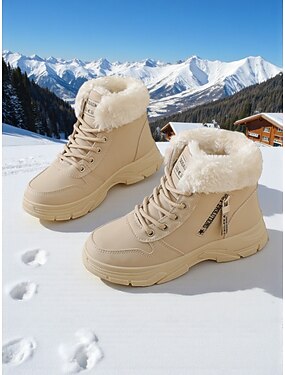 Baskets montantes blanches chaudes pour femmes avec doublure en fausse fourrure - chaussures d'hiver tendance à semelle épaisse pour une tenue décontractée en extérieur