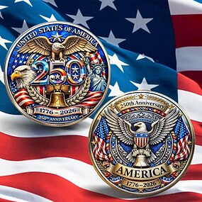 Pièce commémorative du 250e anniversaire des États-Unis - Pièce de collection en édition limitée (1776-2026) représentant un aigle, la cloche de la Liberté et le drapeau américain.