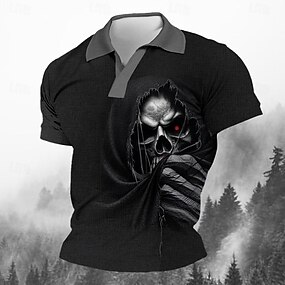 Jour des Morts Homme Crâne Polo Chemise de golf Manche Courte Polos Col en V Horreur Vêtements de rue Vêtements de festival Tenues de fête Impression 3D Printemps & Été Noir