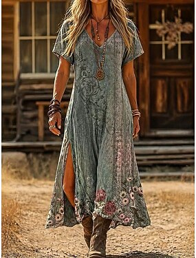Femmes Robe Midi Robe bohème Robe d'Été Robe Décontractée Robe Ethnique Élégant Bohème Vacances Plage Fête Date Coupe Ample Fleuri Graphique Manche Courte Col en V Bleu Rose Claire Violet Vert Ét