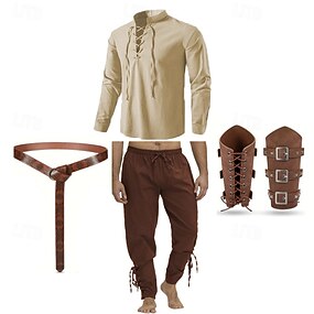 ancien Médiéval Renaissance Pantalon Tenues Ceinture Taille Pirate Ranger Couleur Unie Déguisement Homme Viking Fantaisie Mascarade Performance Mascarade LARP Adulte Chemise Pantalon Ceinture