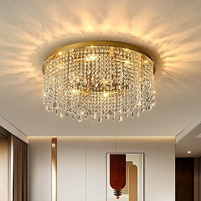 Lustres de plafond LED de luxe dorés compatibles avec la lampe suspendue en cristal moderne du salon compatible avec la décoration de la maison au plafond, éclairage de plafond