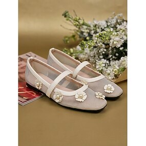 Ballerines élégantes en maille abricot pour femmes - chaussures Mary Jane respirantes ornées d'appliqués de fleurs en perles, idéales pour les croisières et les moments de détente sur un yacht de