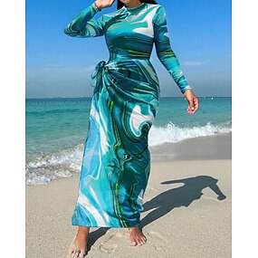 Femmes Maillot de bain Maillots de bain Une pièce imprimé Ultra Léger (UL) Protection UV Élastique manche longue Maillot de Bain Surf Plongée en apnée Hiver