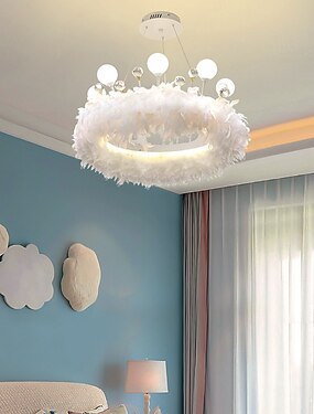 led suspension lustre magnifique extra large 23" 1-lumière bouquet de plumes blanches suspension luminaire monté romantique pour restaurant chambre d'enfants 110-240v