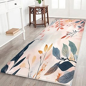 Tapis de couloir antidérapant en flanelle imprimée à motif de plantes, de fleurs et de feuilles, idéal pour l'entrée, la salle de bain et la décoration intérieure.