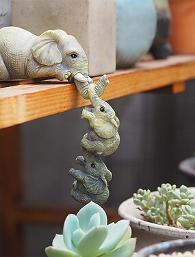 Ensemble de 3 figurines d'éléphants à poser sur une étagère, une éléphante et ses bébés suspendus au bord, décoration de cheminée, figurines en résine peintes à la main, cadeau idéal pour la