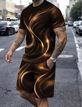 Homme Géométrique Ligne 2 pièces Ensembles de tees Hauts d'été Manche Courte Pantalon court Col ras du cou Occasionnel Tendance Quotidien Extérieur Vacances Impression 3D Été Bleu Rouge Marron