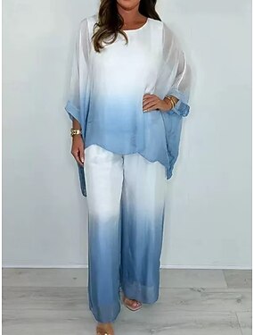 Femmes Chemise Ensembles de Pantalons Demi Manches Col rond A Ombre Fleuri Graphique Imprimé Basique Fête Décontracté Quotidien Week-end Blanche Jaune Bleu clair Été Coupe régulière