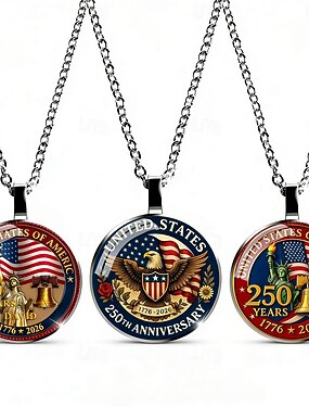 Ensemble de 3 colliers commémoratifs du 250e anniversaire des États-Unis : pendentif aigle et drapeau américain, bijou patriotique, pièce de collection 1776-2026, fête nationale américaine, 4 juillet, cadeau pour célébrer la fierté américaine.