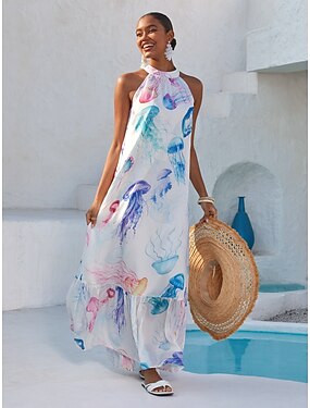 robe longue en mousseline à motif méduse vaporeuse