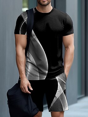 Homme Géométrique Impressions Graphiques 2 pièces Ensembles de tees Ensembles assortis Manche Courte Pantalon court Col ras du cou Sport Designer Occasionnel Extérieur Vacances Quotidien Printemps