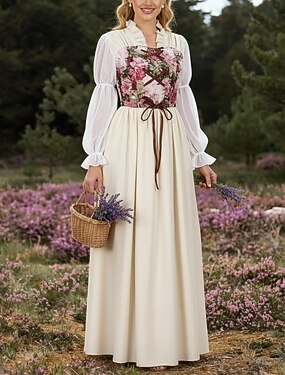 Rétro Vintage Médiéval Renaissance Robe Ensemble d'accessoires Viking Elfe Déguisement Femmes Halloween Carnaval Mascarade LARP Adulte Robe Plus d'accessoires Boucles d'oreilles