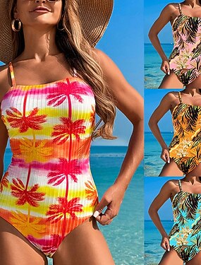 Femme Maillot de bain 1 pièce Maillots de Bain Floral Maillots de Bain Jaune Rose Claire Respirable Séchage rapide Poids Léger Sans Manches - Natation Surf Plage Eté Printemps