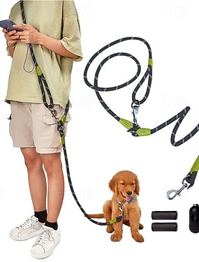 Ensemble de laisse mains libres pour chien, laisse double usage (taille/dos) avec section ajustable, résistante, convient pour deux chiens, en nylon réfléchissant, robuste et extensible, idéale pour