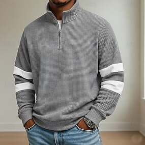 Homme Chemises Polo Gaufre École Athleisure Col montant manche longue Loisir Uni Fermeture éclair Printemps Automne Bleu Marron Gris Chemises Polo Gaufre