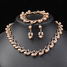 Parure de Bijoux 1 jeu Imitation Perle Alliage 1 Collier Boucles d'Oreilles Femme mode Coréen Doux Mignon Boule Rond Parure de Bijoux Pour robe demoiselle d honneur Travail Cadeau