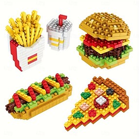 5 pièces Créer Mini Nourriture 3D Modèle de blocs de construction - DIY Burger Frites Hot Dog Puzzle Assemblage Jouet éducatif pour Cadeaux de Noël et de Thanksgiving Cadeau de Noël