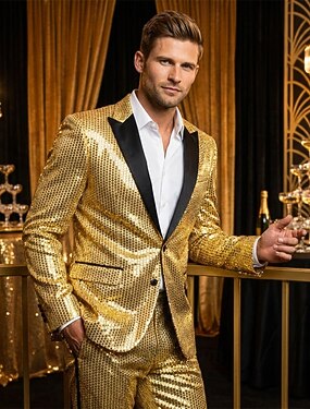 Disco Années 1980 Costumes & Blazers Blazer à Col Revers Revers de pointe Normal Disco Paillettes Déguisement Homme Halloween Mascarade Club Soirée Défilé de la Fierté Adulte Manteau