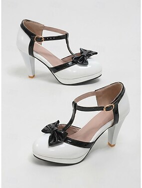 Escarpins rétro Mary Janes pour femmes, style années 1950 - élégants escarpins rouges et noirs à bride en T, ornés d'un nœud et dotés d'un talon compensé, parfaits pour les soirées rockabilly et les