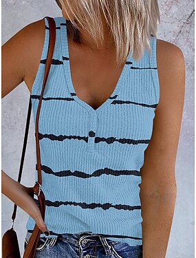 Femmes Débardeur caraco Imprimé Graphique Rayé ancien Élégant Occasionnel Sans manches Sans manches Col en V Hauts Réguliers Quotidien Bleu Rose Claire Vert Véronèse Été Printemps