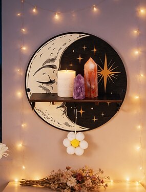 Étagère décorative en bois en forme de lune de lotus ajourée, à monter soi-même, étagère flottante, idéale pour la décoration murale des chambres, des débarras et le rangement de petits objets.