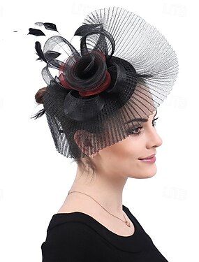 Fascinators Sinamay Mariage Anniversaire Élégant ancien Mignon Avec Plume Tulle Casque Couvre-chef